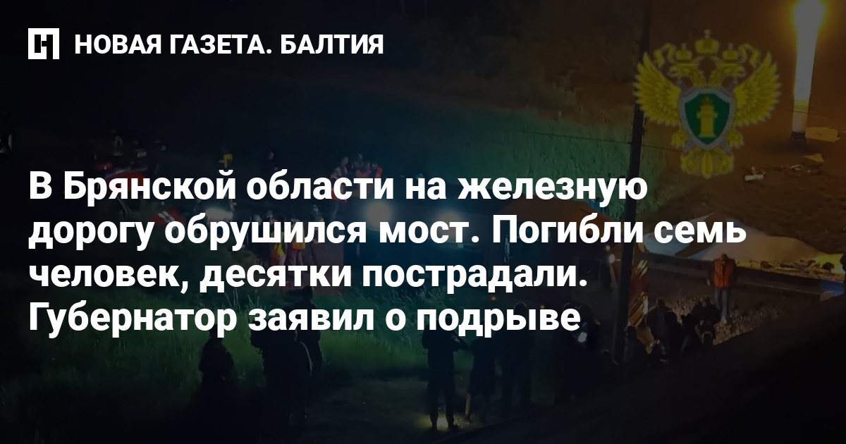 Губернатор Брянской области Александр Богомаз сообщил, что погибли 7 человек, еще 47 доставлены в больницы. Он также подтвердил сообщения близких к силовикам телеграм-каналов о том, что мост обрушился из-за взрыва.