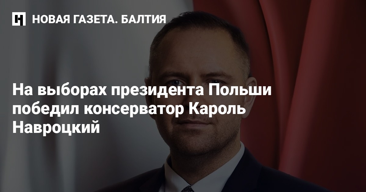 Во втором туре выборов президента Польши победил кандидат от партии «Право и справедливость», консерватор Кароль Навроцкий, сообщает избирательная комиссия.