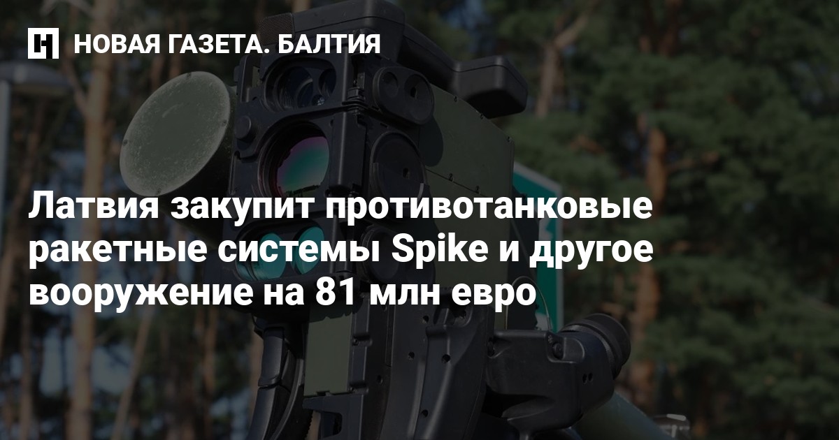 Министерство обороны Латвии и немецкая компания EuroSpike подписали договор о закупке противотанковых ракетных комплексов Spike, боеприпасов и другого оборудования на сумму 81 миллион евро, сообщает пресс-служба ведомства.