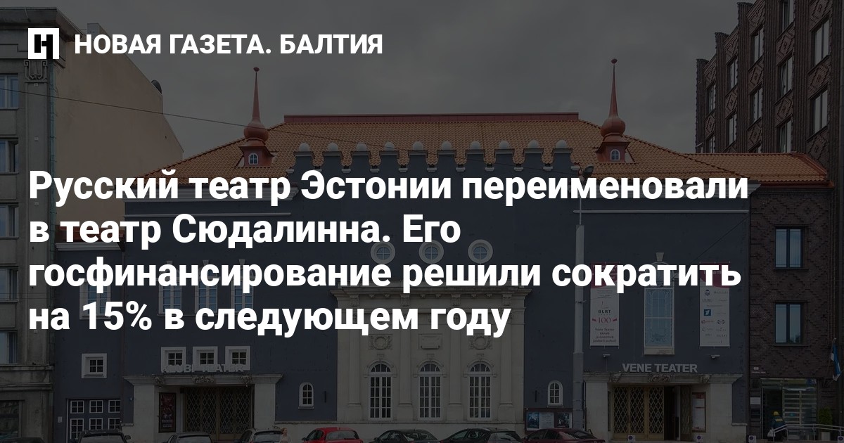 Русский театр Эстонии переименовали в театр Сюдалинна, сообщает ERR. Помимо этого, министерство культуры решило уменьшить государственное финансирование театра на 15% в 2026 году.