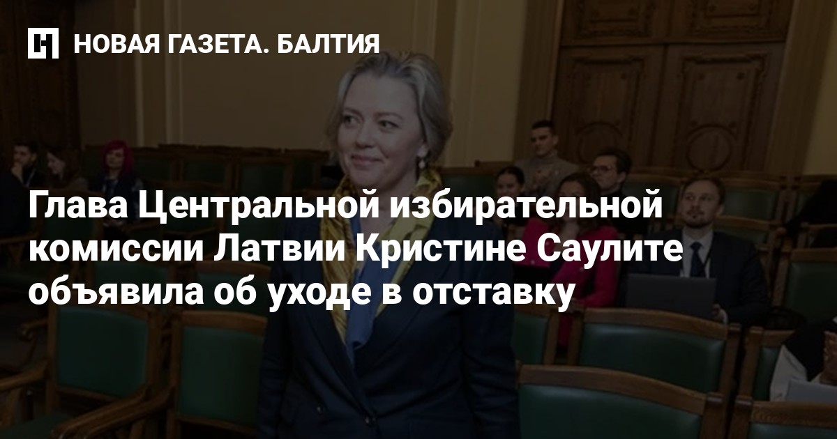 Председательница Центральной избирательной комиссии Латвии Кристине Саулите уходит в отставку, передает LETA. О своем решении Саулите объявила на заседании комиссии Сейма по государственному управлению и самоуправлениям 11 июня.