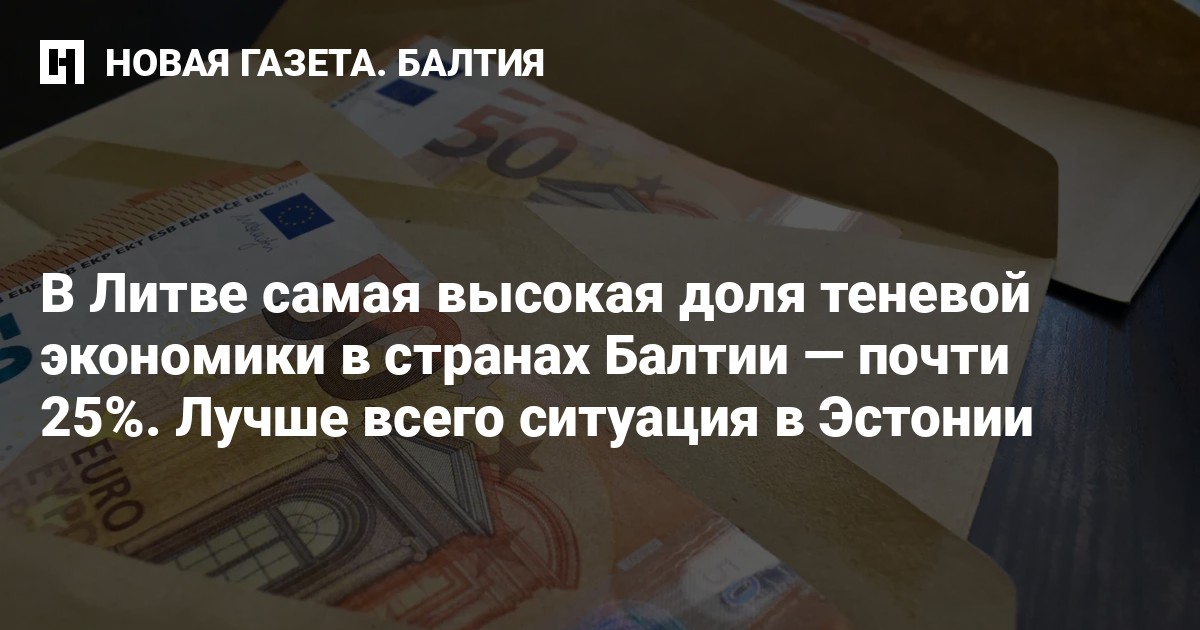 В Эстонии доля теневой экономики за год выросла с 17,9% ВВП до 19,5%. В Литве доля тени в экономике за год снизилась на 1,7 процентных пункта, но все еще остается самой высокой в странах Балтии — 24,7%.