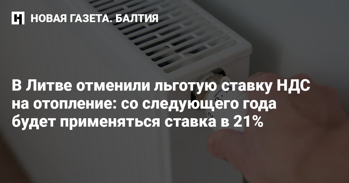 Сейм Литвы отменил льготный 9%-й тариф на отопление, горячую воду и дрова: со следующего года будет применяться стандартная ставка НДС в 21%.