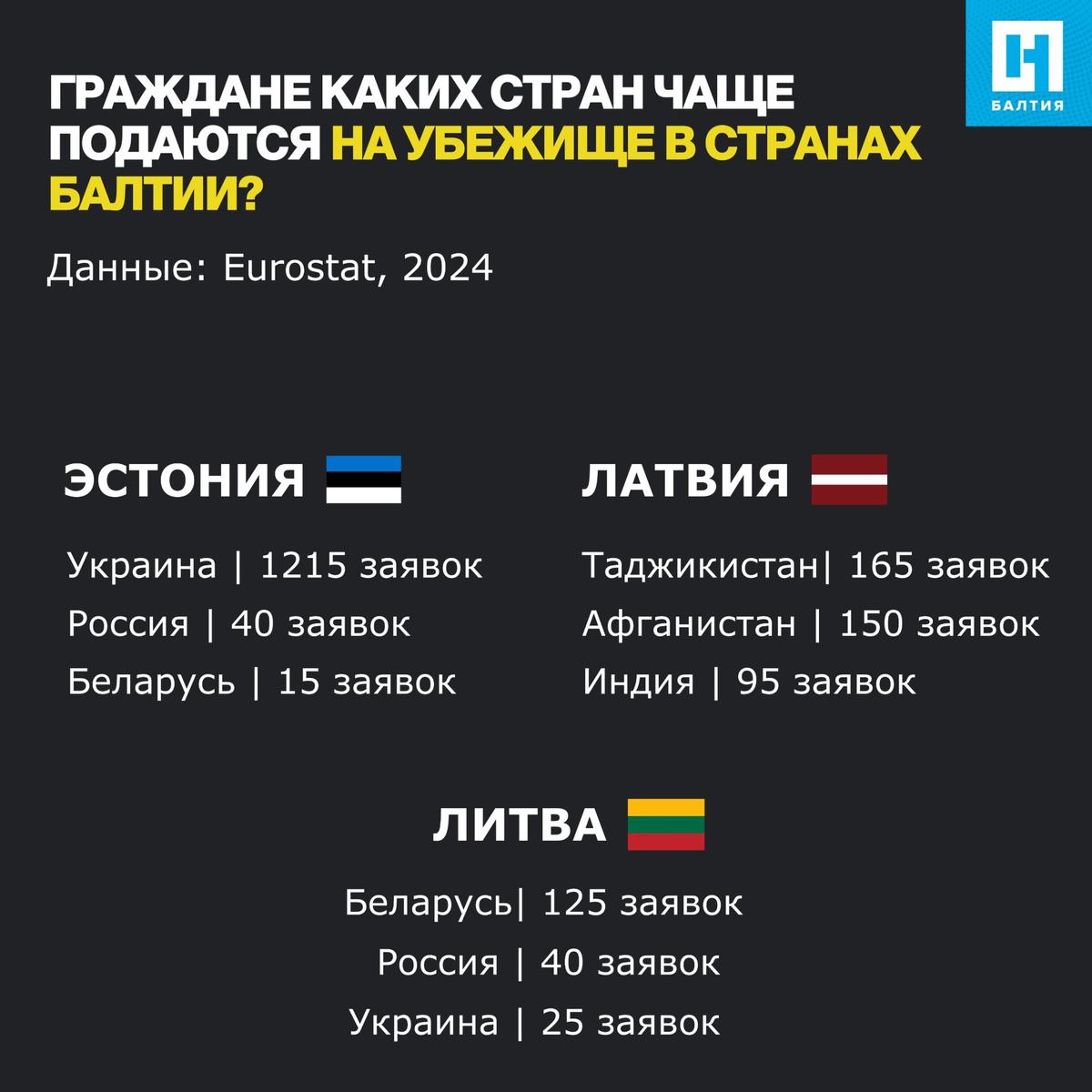 Так, Эстония получила на 67% меньше заявлений, чем в 2023 году. В Латвии число заявок за год сократилось почти на 51%.