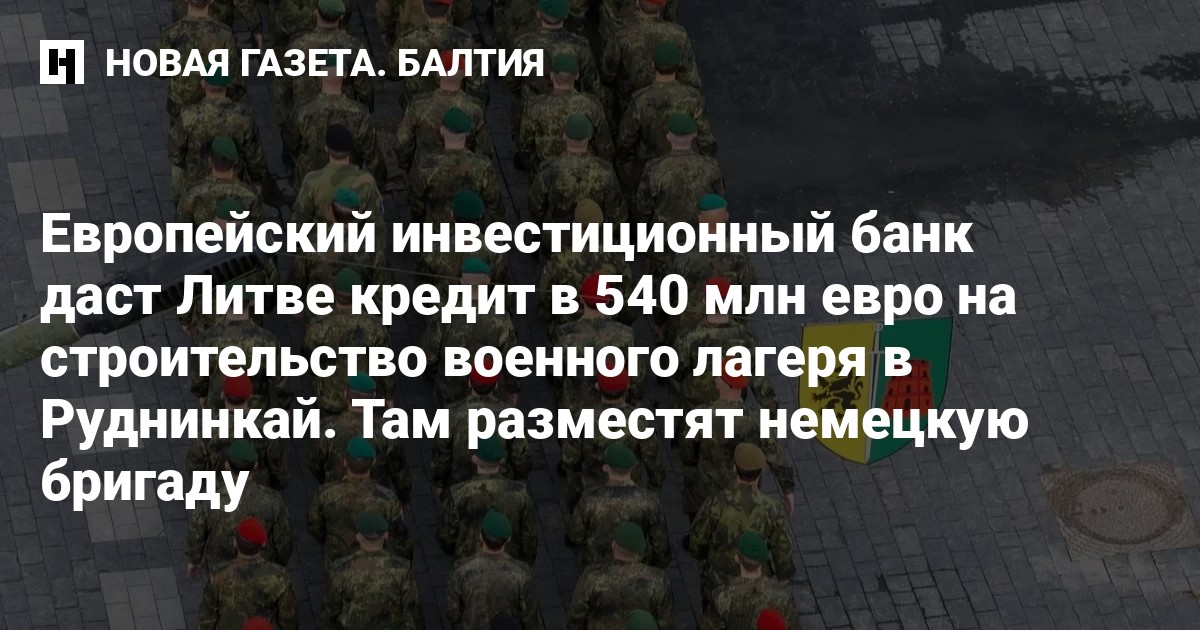Европейский инвестиционный банк одобрил кредит для Литвы в размере 540 млн евро на строительство военного лагеря в Руднинкай, сообщает ELTA. Военный лагерь недалеко от границы с Беларусью выделят немецкой бригаде.