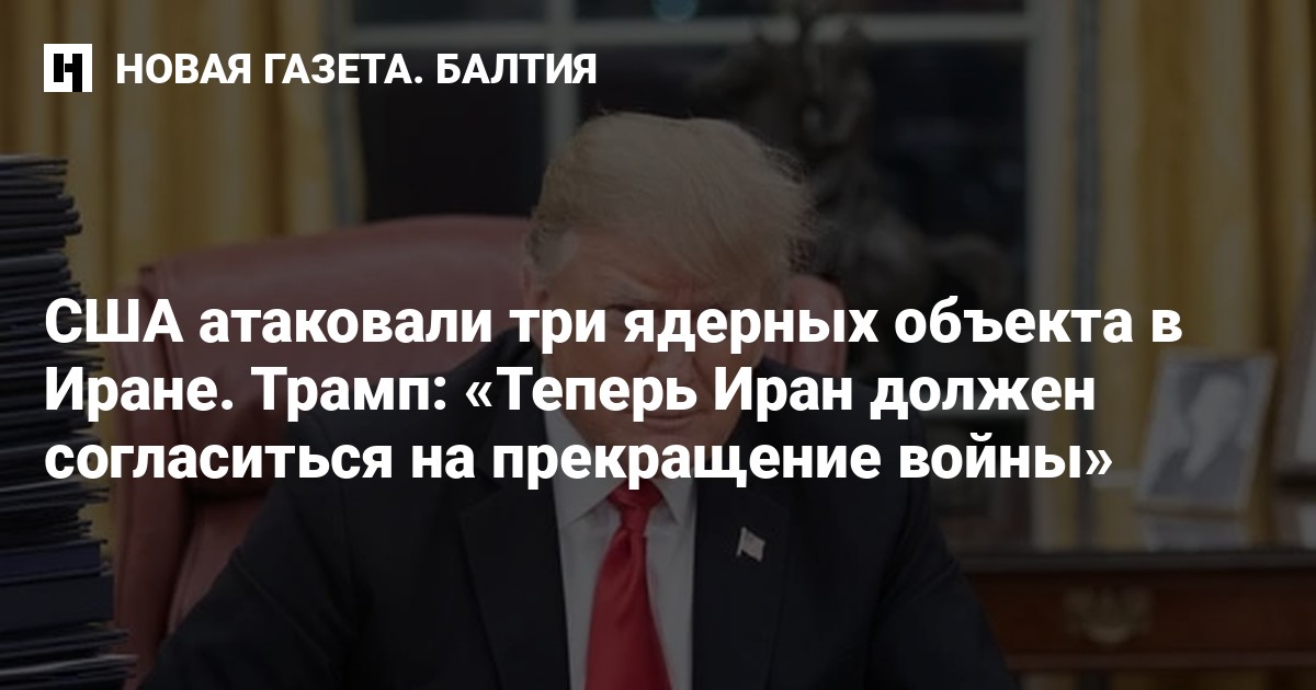 «Мы завершили нашу очень успешную атаку на три ядерных объекта в Иране», — заявил Трамп. По его словам, это исторический момент для США и мира. «Теперь Иран должен согласиться на прекращение войны», — считает Трамп.