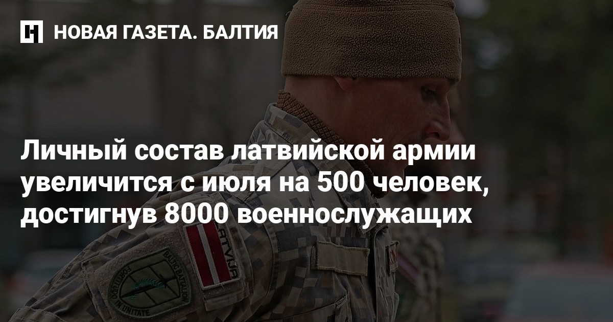 Личный состав латвийской армии увеличится с июля на 500 человек, достигнув 8000 военнослужащих. Такое решение приняло правительство страны, пишет Rus.err.ee.