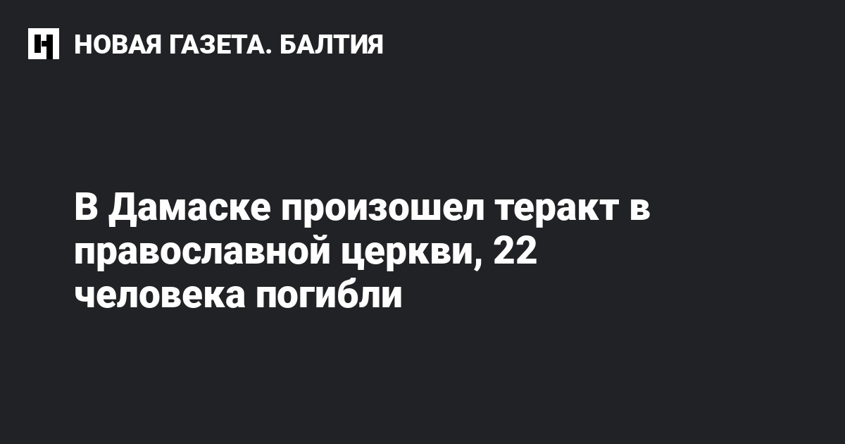 Преступник открыл огонь по прихожанам церкви Святого Ильи на востоке Дамаска, а затем произвел самоподрыв. Syria TV сообщает, что нападавших было двое, сначала они стреляли по посетителям, а затем один из них привел в действие пояс смертника.