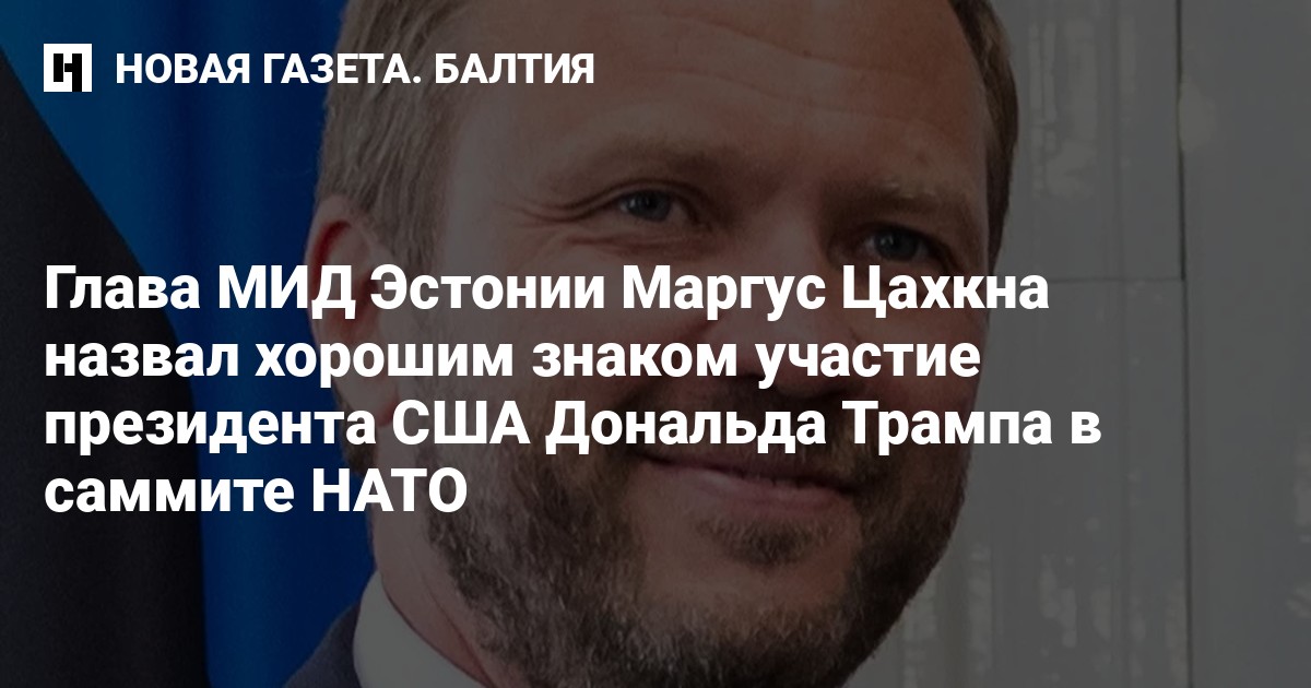 Министр иностранных дел Эстонии Маргус Цахкна назвал хорошим знаком участие президента США Дональда Трампа в саммите НАТО, который пройдет с 24 по 25 июня в Гааге, пишет Rus.err.ee.