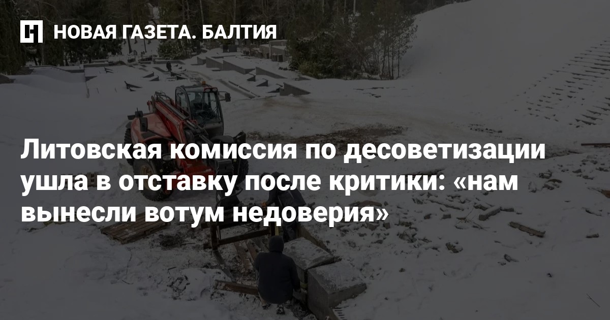 Литовская комиссия по десоветизации решила уйти в отставку после критики со стороны политиков. «Поскольку нам вынесли вотум недоверия, мы не можем работать», — пояснил глава комиссии Витас Карчяускас, сообщает LNK.