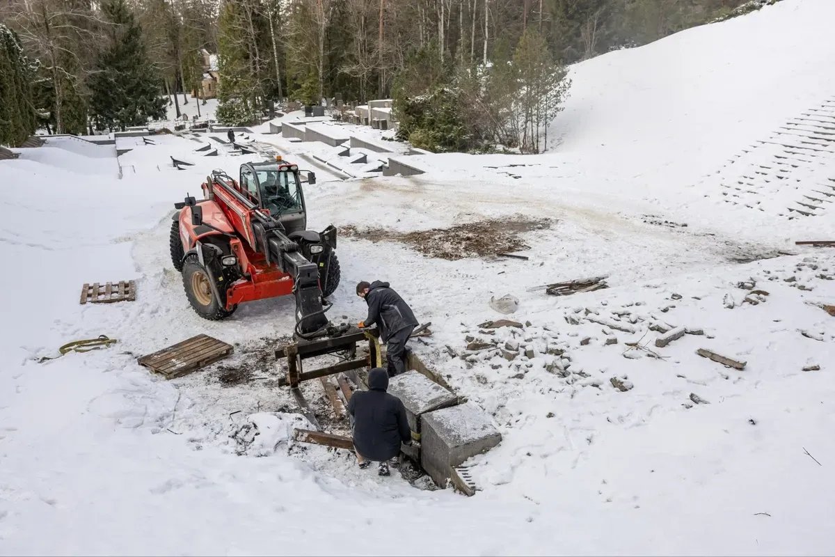 Демонтаж советских монументов на Антакальнисском кладбище. Фото: самоуправление Вильнюса