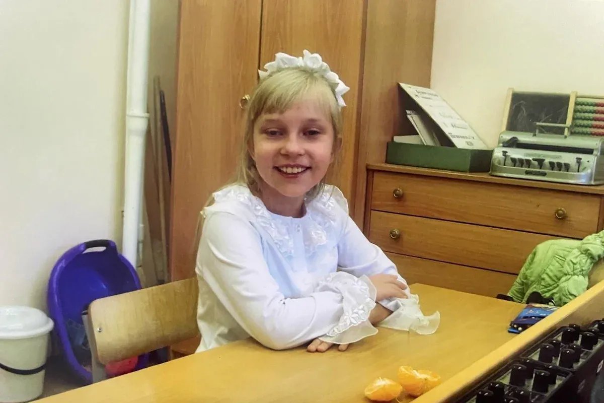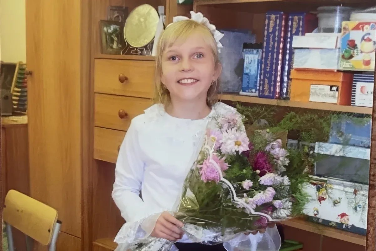 Алена в первый школьный день. К этому времени она уже ничего не видит и не слышит