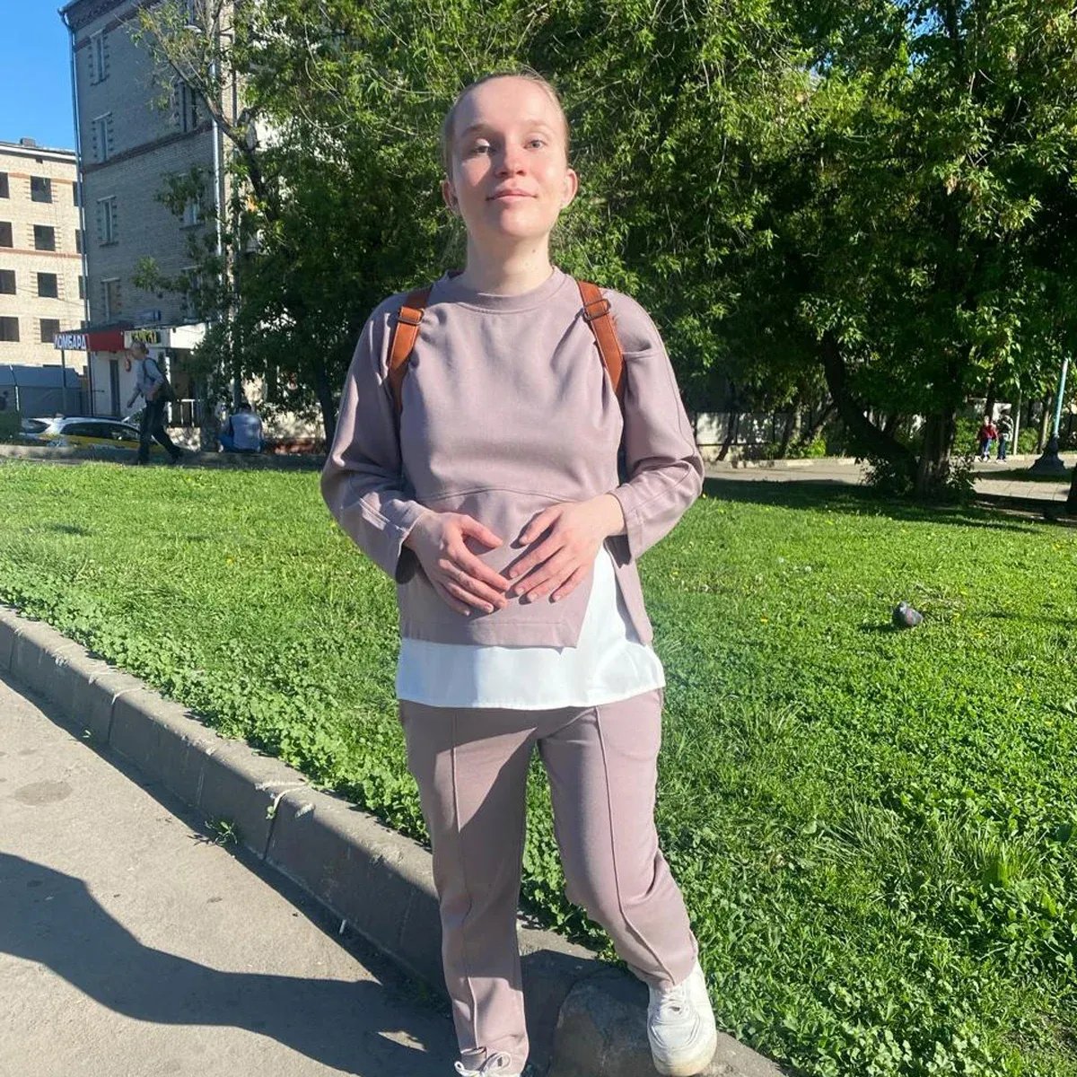 Алена возле своего дома в Москве за месяц до родов, июнь 2024 года