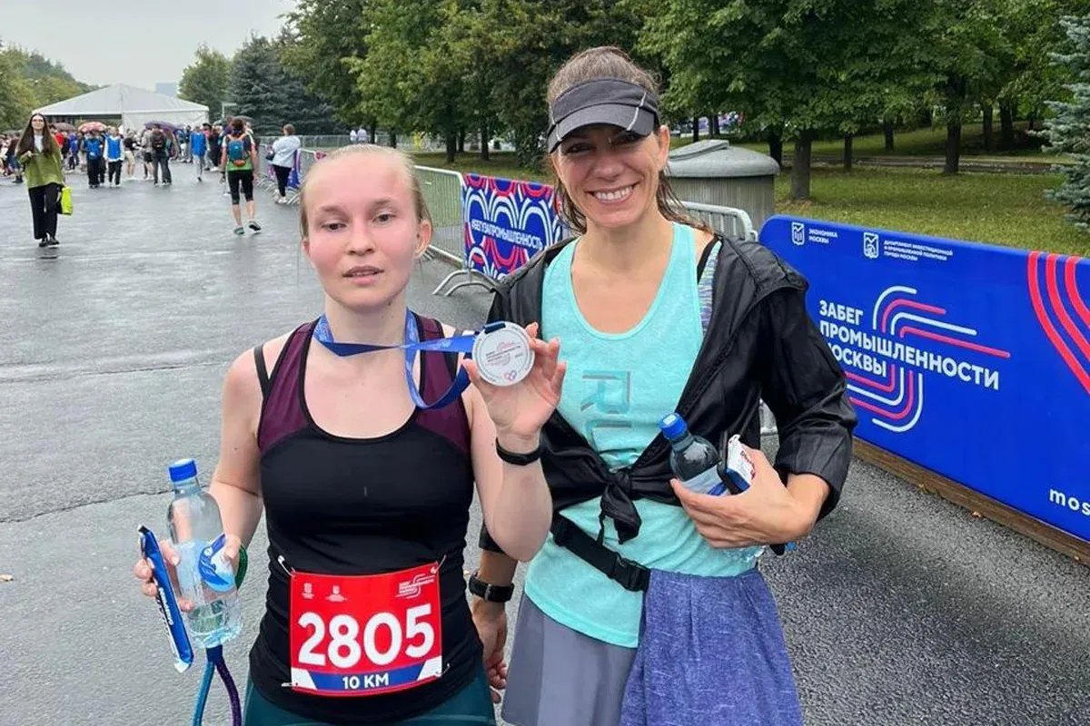 Алена вместе с сопровождающей после марафона в Москве, 2023 год.