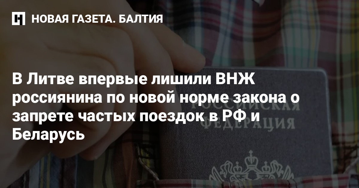 В Литве россиянина лишили временного вида на жительство по новой норме закона, запрещающей частые поездки в Россию и Беларусь, сообщает tv3.lt.
