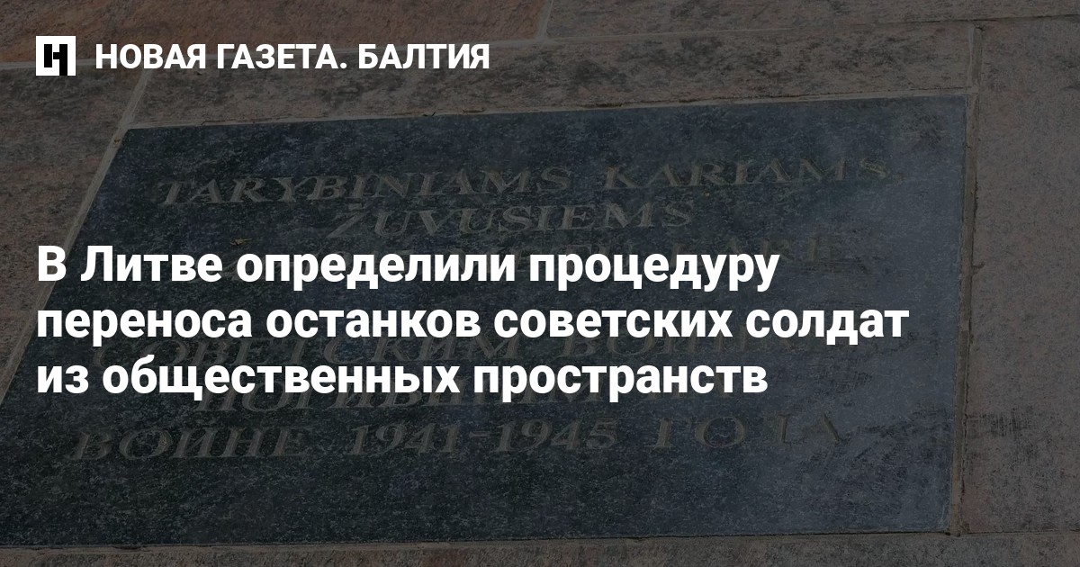Министерство культуры Литвы подготовило процедуру переноса останков советских солдат из общественных пространств на кладбища. Проект передан на утверждение правительства.