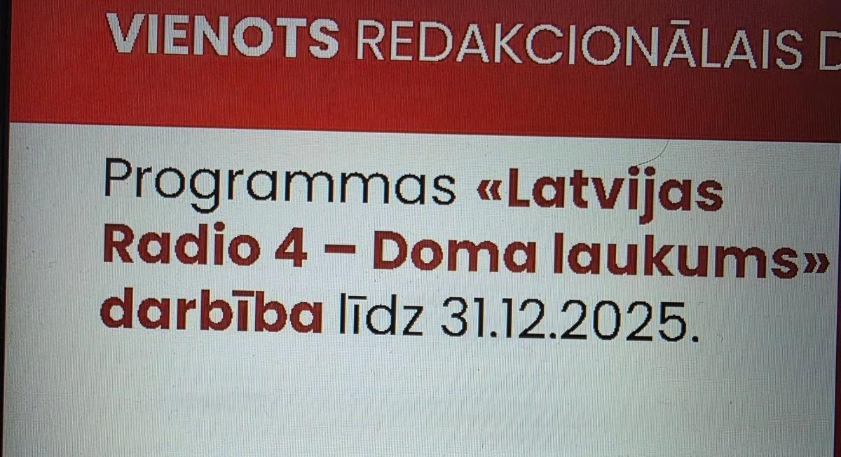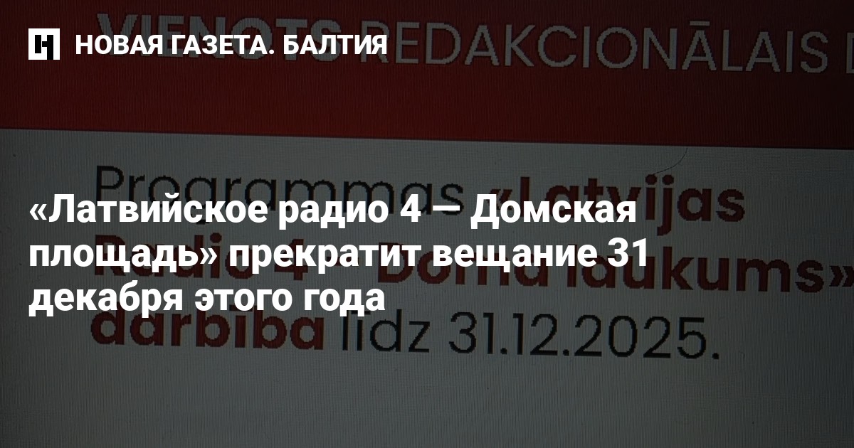 «Латвийское радио 4 — Домская площадь» прекратит вещание 31 декабря 2025 года, сообщила в Facebook сотрудница редакции Ольга Князева.