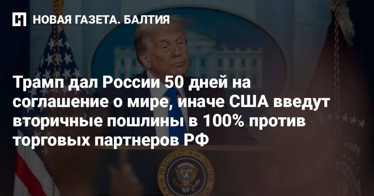 США введут вторичные пошлины в 100% против торговых партнеров России, если в ближайшие 50 дней не будет достигнуто соглашение о мире в Украине, передает DW.