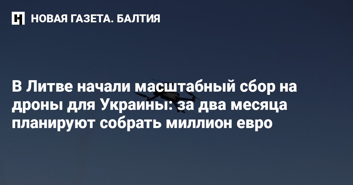 Литовская организация Blue/Yellow начала сбор на дроны для Украины. В рамках кампании, которая продлится два месяца, планируется собрать миллион евро.