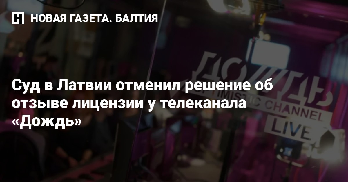 Ранее Рижский окружной суд оставил в силе решение аннулировать лицензию на вещание телеканала «Дождь».