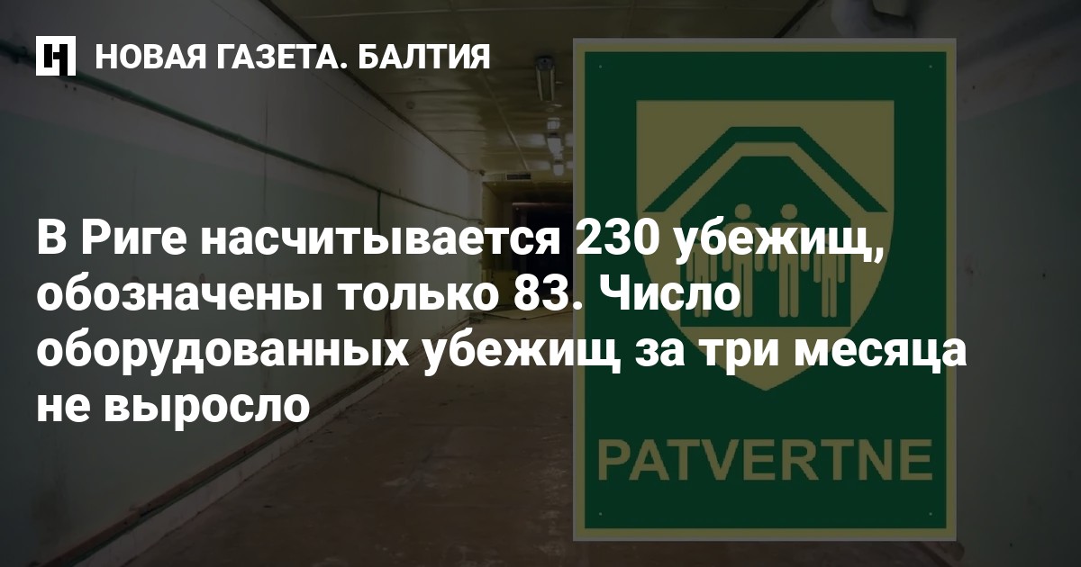 В Риге насчитывается 230 убежищ, которые признаны соответствующими или частично соответствующими требованиям. Из них 83 убежища обозначены, в остальных нужно провести работы и привести их в порядок.
