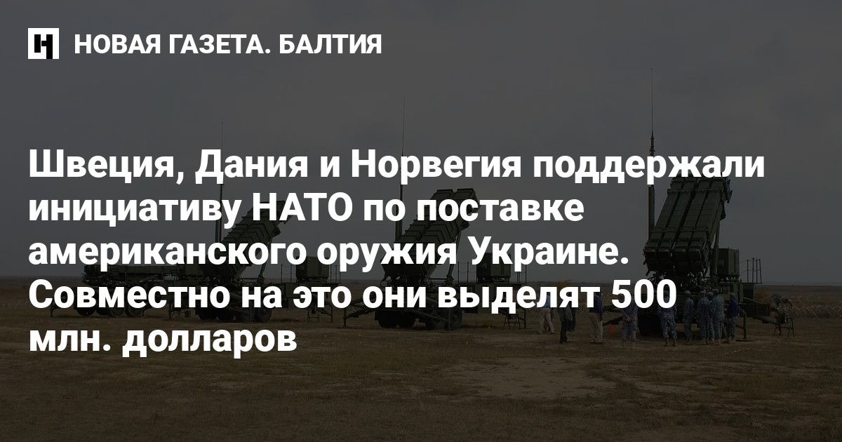 Швеция, Дания и Норвегия объявили о поддержке инициативы НАТО по поставке американского оружия Украине. Совместно на эти цели они выделят 500 млн. долларов, сообщает правительство Норвегии.