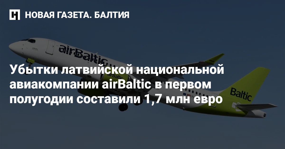 Концерн латвийской национальной авиакомпании airBaltic в первом полугодии работал с убытками 1,7 млн евро. Для сравнения, в первом полугодии прошлого года убытки составили 88,8 млн, передает LETA.