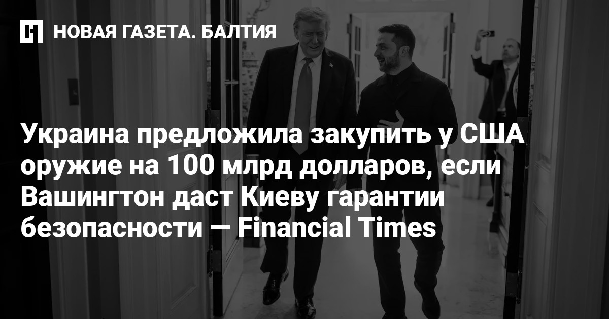 Если США дадут Украине гарантии безопасности, Киев закупит американского оружия на 100 млрд долларов, сделку профинансируют европейские страны. По данным Financial Times, такое предложение Владимир Зеленский сделал Дональду Трампу.