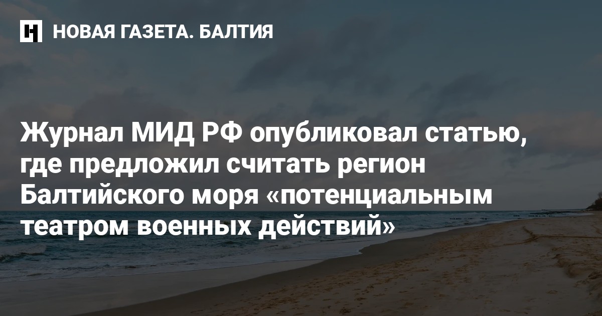 Журнал министерства иностранных дел России «Международная жизнь» опубликовал статью о регионе Балтийского моря. Автор текста, главный научный сотрудник Института Европы Российской академии наук Николай Межевич, предлагает считать Балтику «потенциальным театром военных действий».