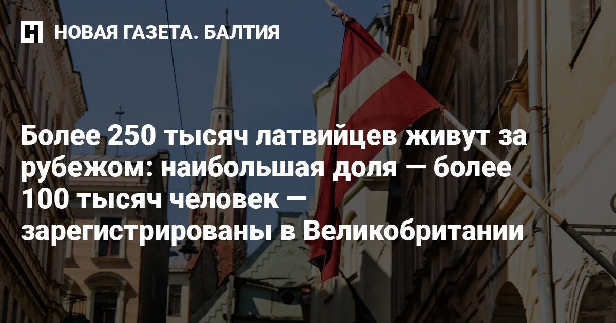 У 100 374 подданных Латвии место жительство было зарегистрировано в Великобритании. Далее следуют Германия, где зарегистрированы почти 27 тысяч подданных Латвии, и Ирландии (24 тысячи).
