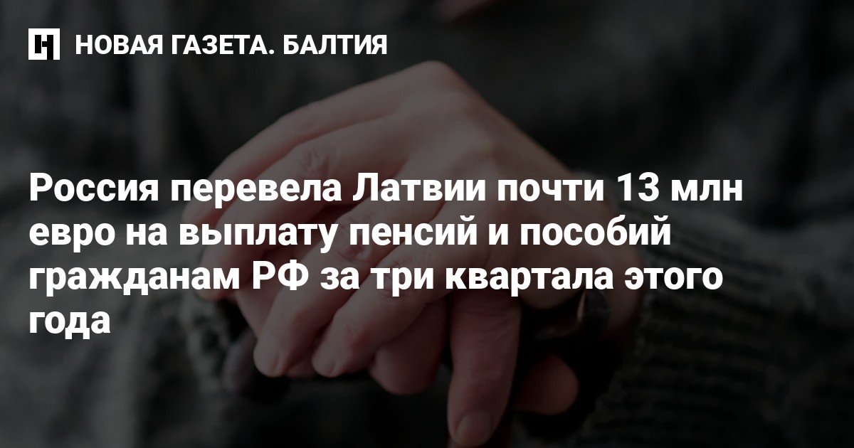 Россия перечислила Латвии почти 13 млн евро на выплату пенсий и пособий гражданам РФ за три квартала 2025 года, сообщает LETA.