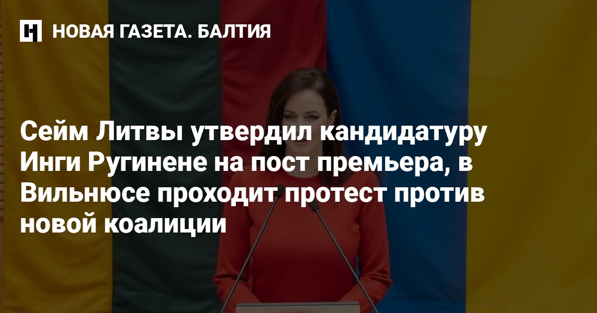Сейм Литвы утвердил кандидатуру Инги Ругинене (Социал-демократическая партия) на пост премьер-министра Литвы. За соответствующее постановление проголосовали 78 депутатов, против — 35, еще 14 воздержались.