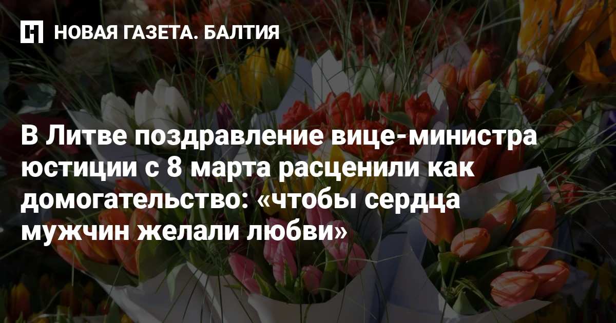 Управление омбудсмена по вопросам равных возможностей признало домогательством поздравление, которое вице-министр юстиции разослал сотрудницам 8 марта. Министерство получило предупреждение.