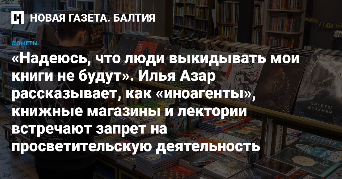 — Скорее всего, [будем] снимать с продажи [книги «иноагентов»]. Мы стараемся не бежать впереди паровоза, но закон нарушать не будем. Мы находимся внутри ситуации и делаем то, что приходится, из соображений безопасности, — сказал мне представитель книжного магазина в одном из российских регионов. Летом в этом магазине, как и во многих других, проходила распродажа книг «иноагентов».