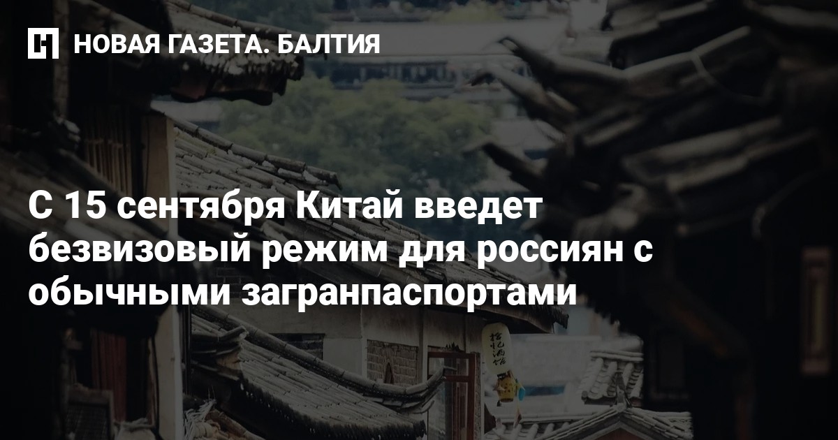 С 15 сентября Китай введет безвизовый режим для россиян с обычными загранпаспортами. Об этом сообщил пресс-секретарь МИД страны Го Цзякунь на брифинге.