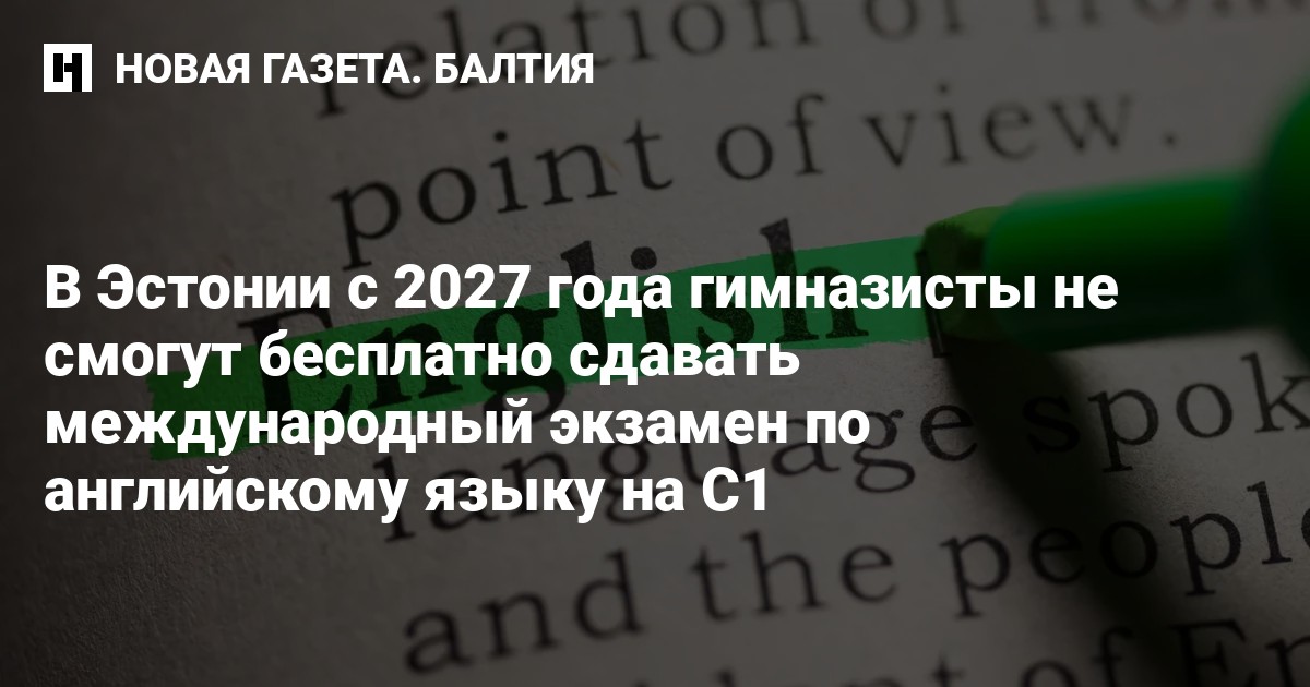 С осени 2027 года эстонские гимназисты не смогут бесплатно сдавать международный экзамен по английскому языку на уровень C1, сообщает ERR.