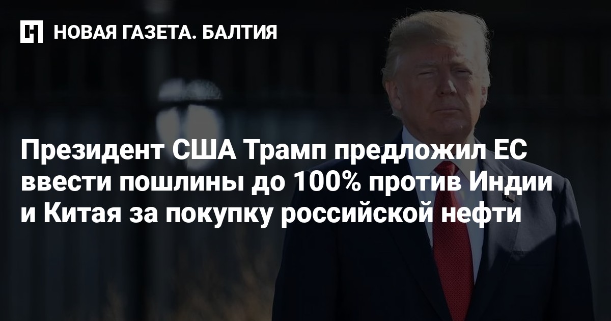 Президент США Дональд Трамп призвал Европейский союз ввести пошлины до 100% на товары из Индии и Китая, поскольку эти страны покупают российскую нефть, пишет Financial Times.