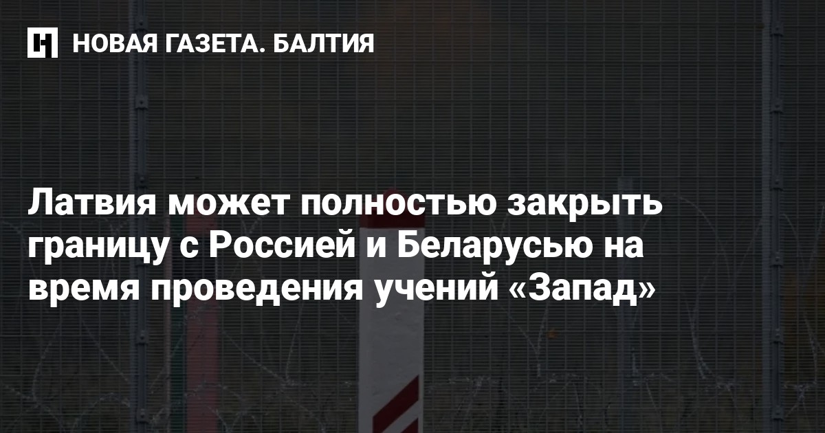 11 сентября латвийский парламент передал на рассмотрение Комиссии по национальной безопасности проект решения о полном закрытии границы с Россией и Беларусью на время проведения военных учений «Запад», пишет Delfi.