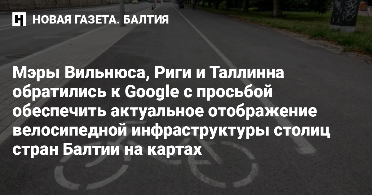 Мэры Вильнюса, Риги и Таллинна направили совместное обращение руководству Google с просьбой обеспечить полное и актуальное отображение велосипедной инфраструктуры столиц стран Балтии в приложении Google Maps, сообщает муниципалитет Таллинна.