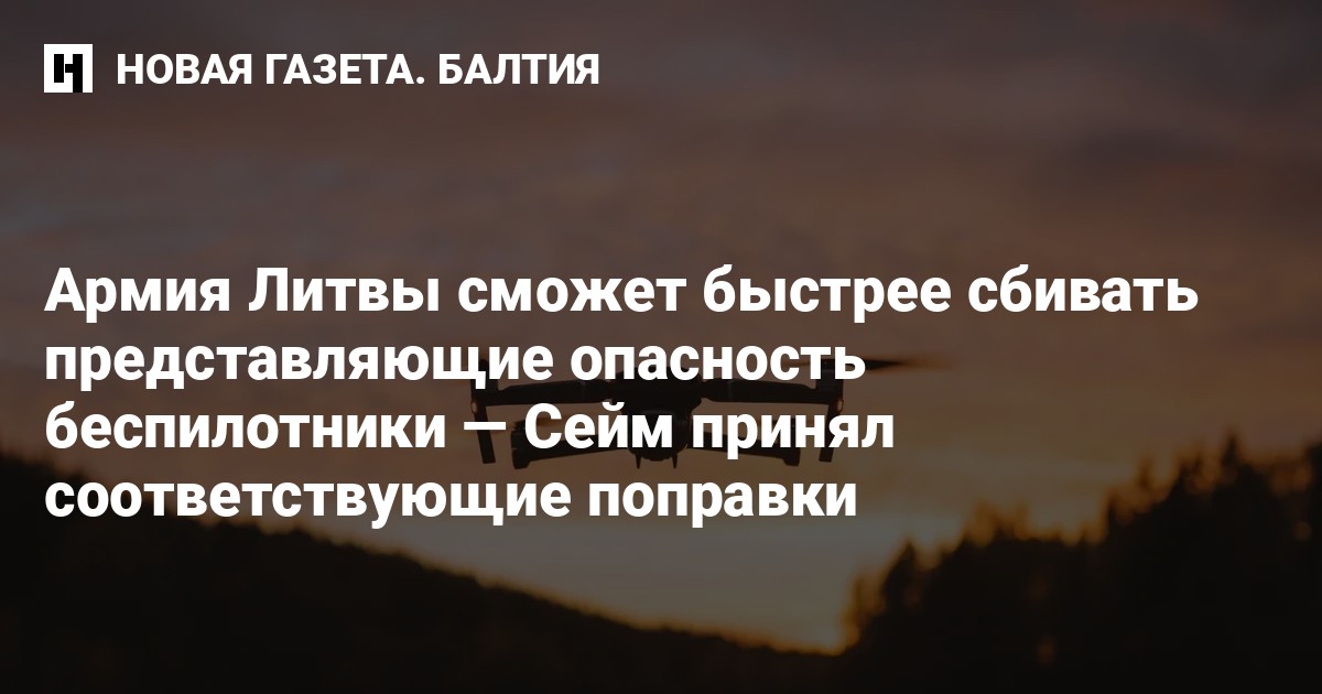 Армия Литвы сможет быстрее сбивать представляющие опасность дроны. Соответствующие поправки 23 сентября единогласно приняли депутаты Сейма.