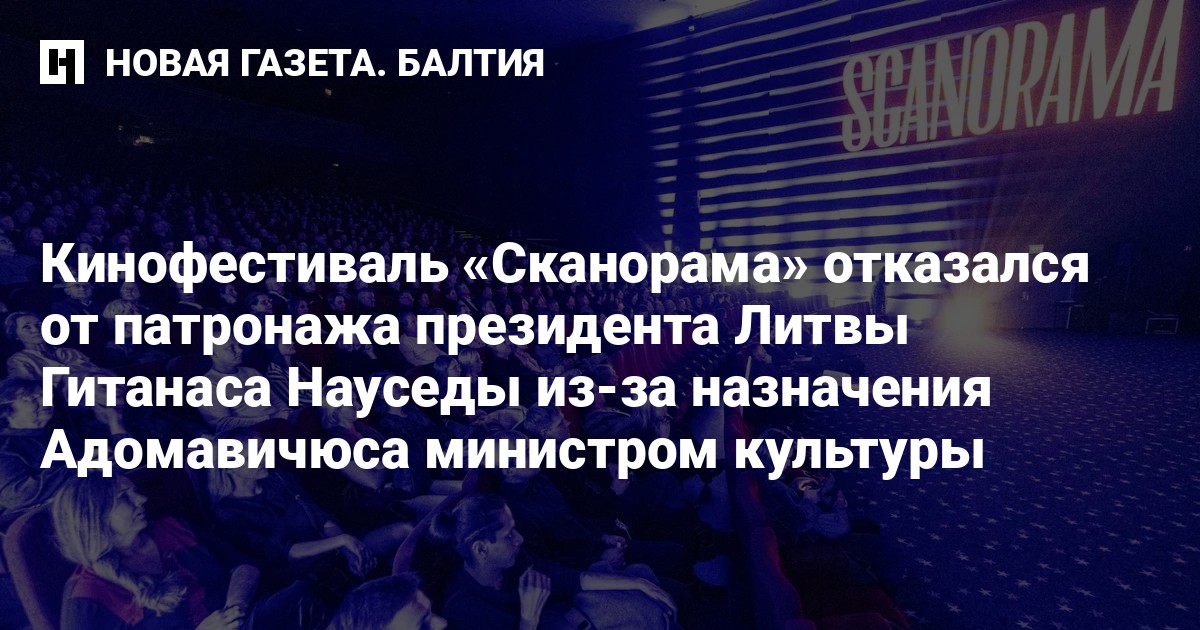 Кинофестиваль «Сканорама» отказался от патронажа президента Литвы Гитанаса Науседы после назначения представителя партии «Заря Нёмана» Игнотаса Адомавичюса министром культуры.
