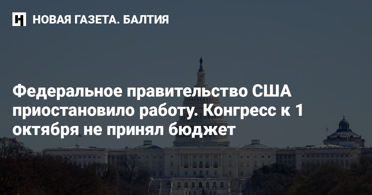 Федеральное правительство США приостановило работу. Конгресс к 1 октября не принял бюджет, из-за чего начался шатдаун, сообщает «Радио Свобода».