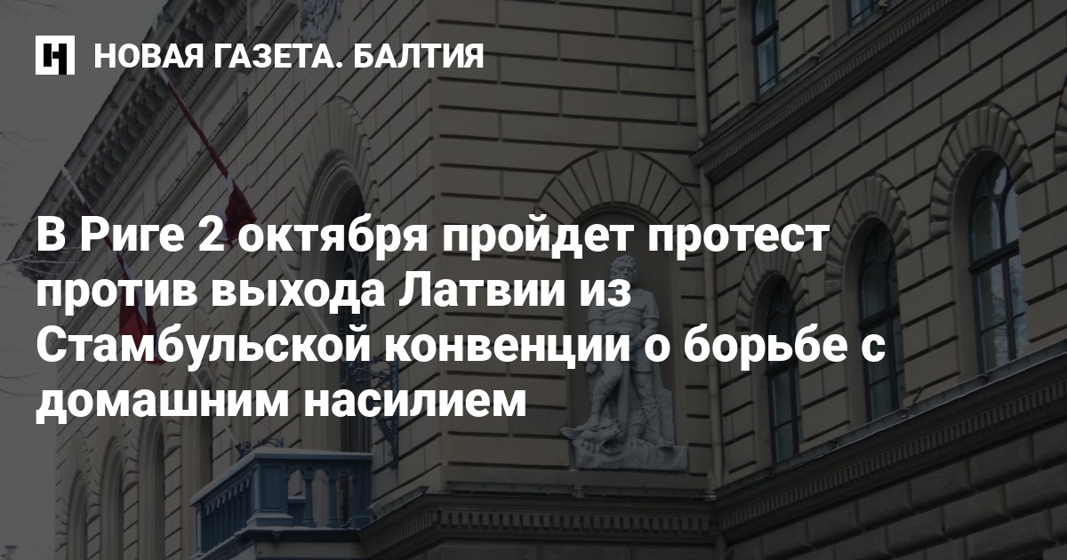 2 октября в 12.00 у здания Сейма в Риге пройдет протест против выхода Латвии из Стамбульской конвенции о предотвращении и борьбе с насилием в отношении женщин и домашним насилием.