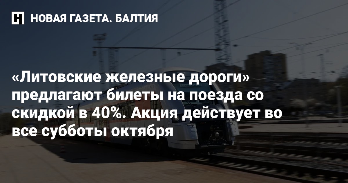 «Литовские железные дороги» предлагают билеты на внутренние поезда со скидкой в 40% на 4, 11, 18 и 25 октября.