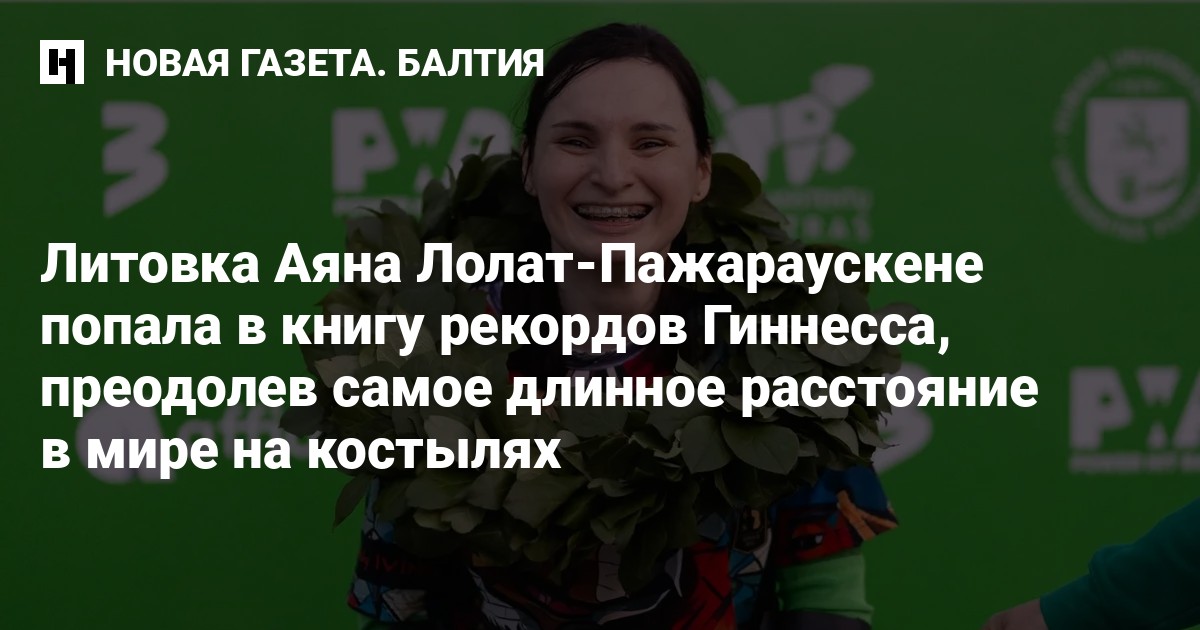 Литовка Аяна Лолат-Пажараускене попала в книгу рекордов Гиннесса, преодолев самое длинное расстояние в мире на костылях. У женщины церебральный паралич, она преодолела 19 км 261 м за 12 часов.
