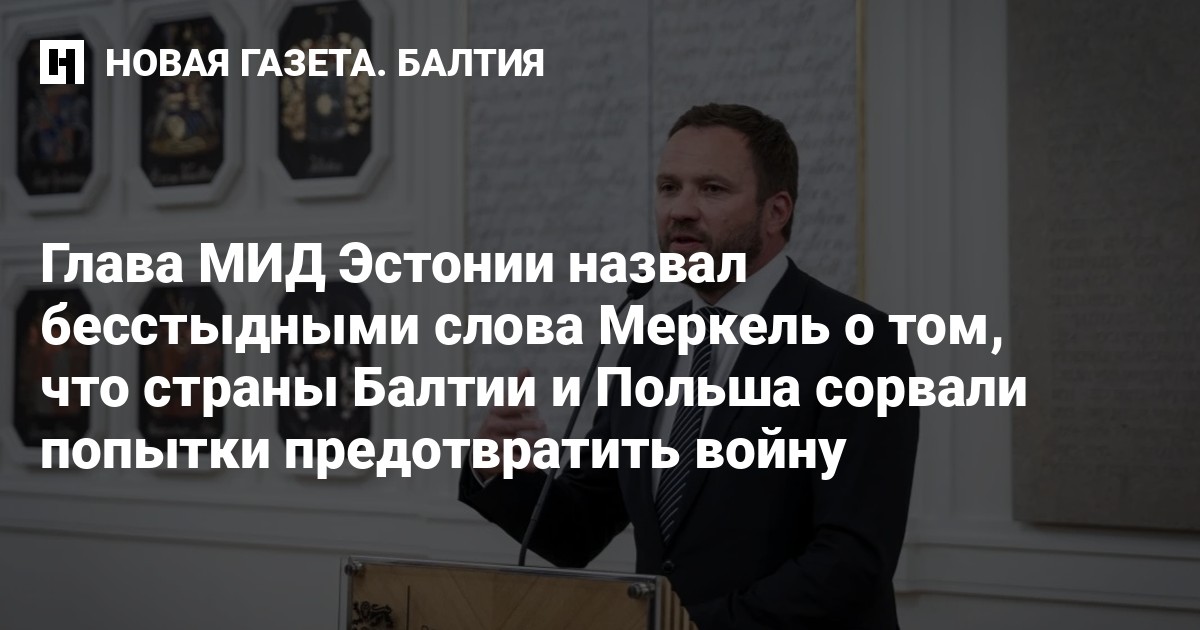 Министр иностранных дел Эстонии Маргус Цахна назвал бесстыдными и полностью лживыми заявления бывшего канцлера Германии Ангелы Меркель о том, что страны Балтии и Польша сорвали попытки предотвратить войну России против Украины.