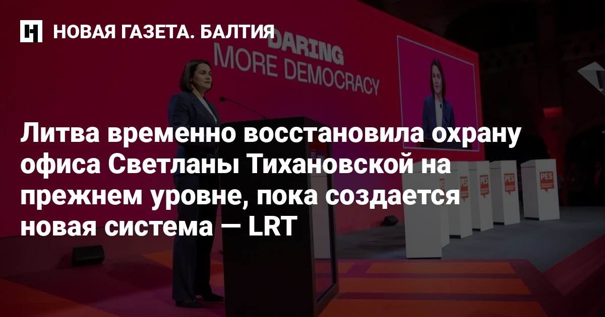 Литва временно восстановила охрану офиса Светланы Тихановской от Службы охраны руководства государства, сообщает LRT. Охрана предоставлена временно, пока создается новая система безопасности. Офис восстановил свою деятельность.