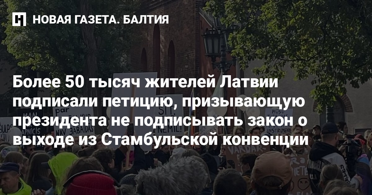 Петиция, призывающая президента Латвии Эдгарса Ринкевичса не подписывать закон о выходе страны из Стамбульской конвенции, собрала более 55 тысяч подписей на портале Manabalss.