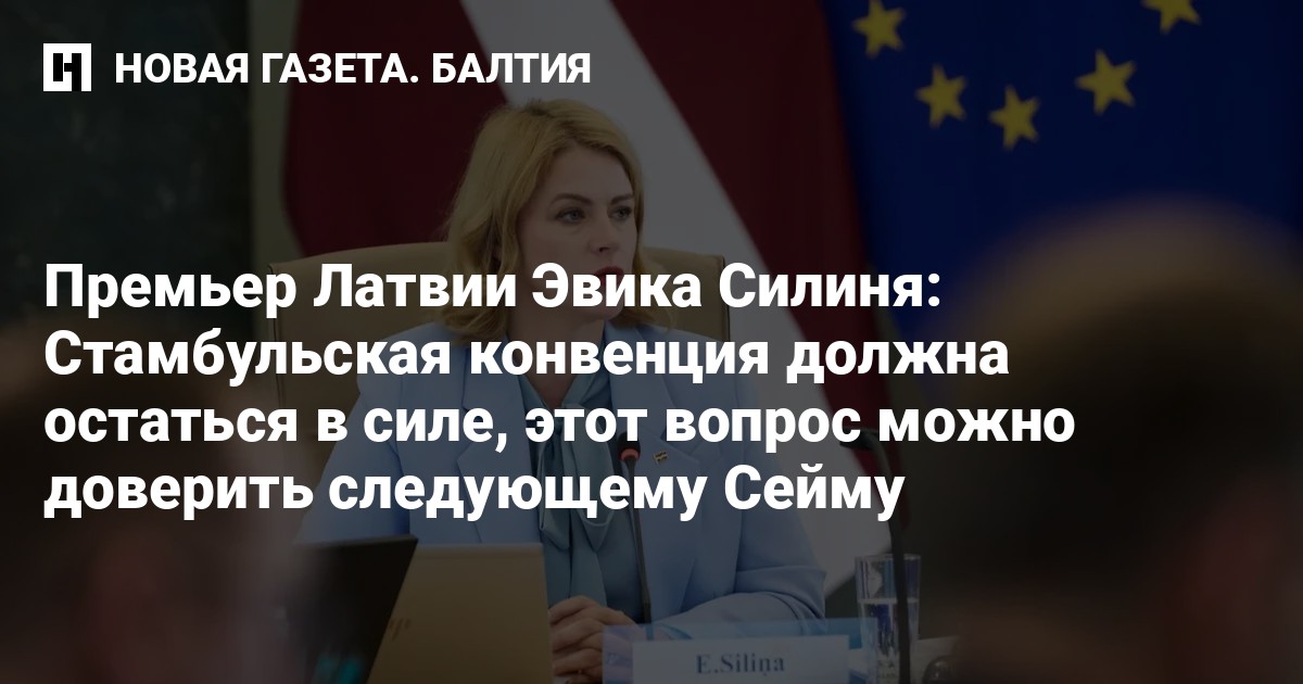 Премьер-министр Латвии Эвика Силиня положительно оценила решение президента Латвии не подписывать закон о выходе страны из Конвенции Совета Европы о предотвращении и борьбе с насилием в отношении женщин и домашним насилием.
