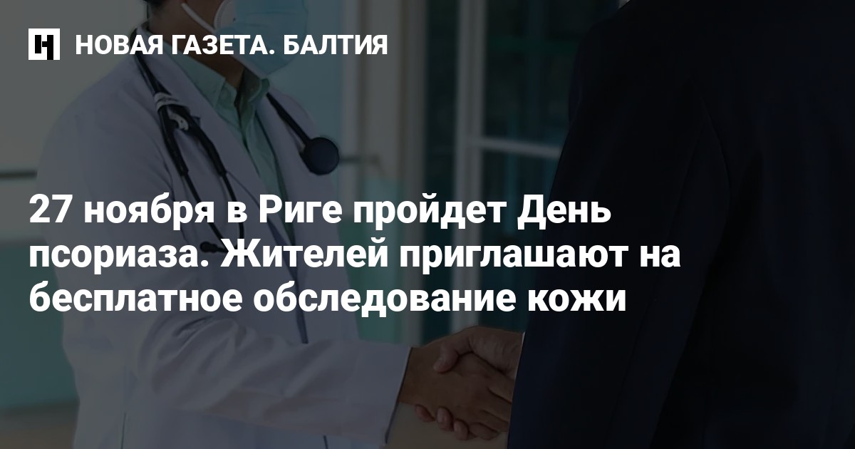27 ноября Рижская 1-я больница проведет День псориаза, в рамках которого жители приглашаются на бесплатное обследование кожи, передает LSM.